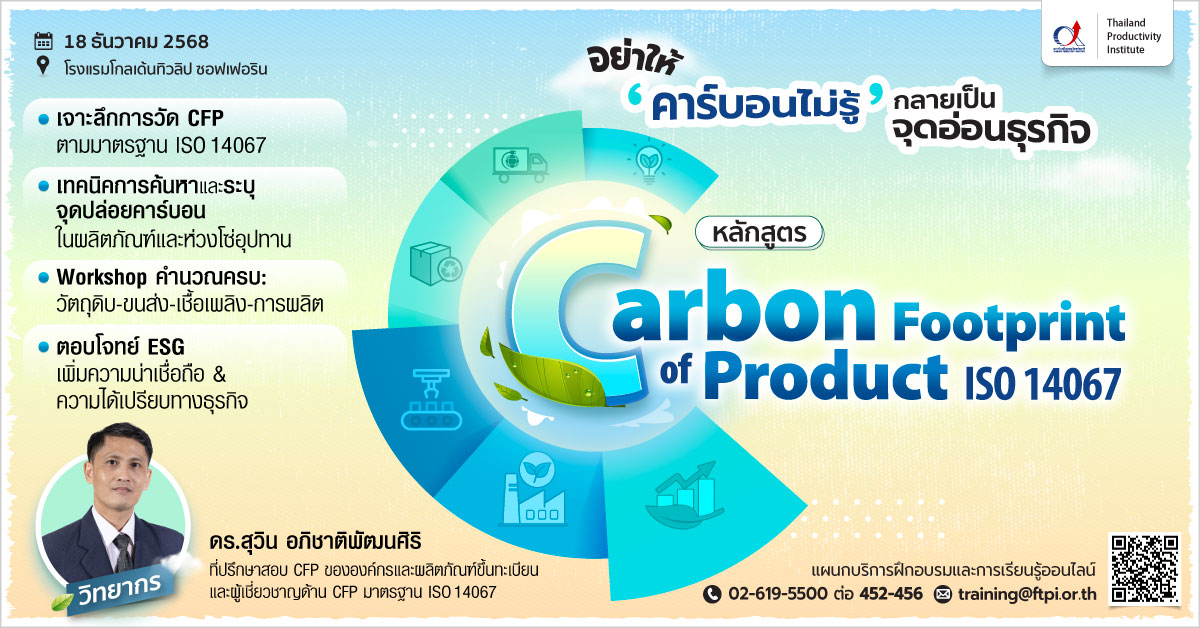 - ที่ปรึกษา และผู้เชี่ยวชาญด้านคาร์บอนฟุตพริ้นท์ผลิตภัณฑ์ (Carbon Footprint of Product) ตามมาตรฐาน ISO 14067