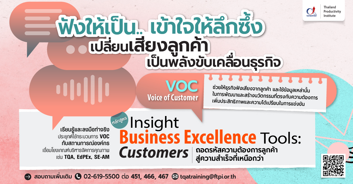 การรับฟังเสียงของลูกค้า (Voice of Customer: VOC) เป็นกระบวนการสำคัญในกรอบการจัดการองค์กรสู่ความเป็นเลิศ เพราะเป็นข้อมูลพื้นฐานที่ผู้นำระดับสูงจำเป็นต้องใช้ในการกำหนดทิศทางและกลยุทธ์องค์กร อย่างไรก็ตาม หลายองค์กรยังประสบปัญหาในการจำแนกกลุ่มลูกค้าที่ไม่ชัดเจน ขาดการมุ่งเน้นกลุ่มเป้าหมาย และไม่สามารถแปลงข้อมูลที่ได้รับให้นำไปใช้ประโยชน์ได้จริง ส่งผลให้ทิศทางการพัฒนาองค์กรอาจไม่สอดคล้องกับความคาดหวังของลูกค้า