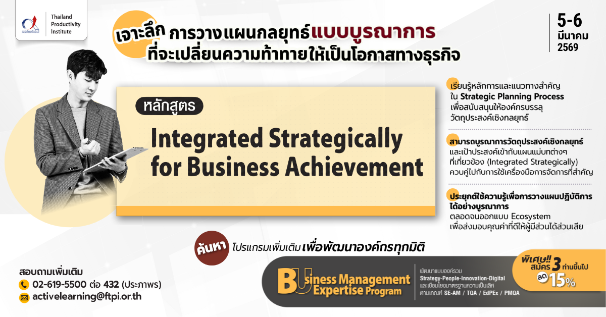- เจาะลึกการวิเคราะห์การบริหารจัดการเชิงกลยุทธ์ (Strategic Planning) เพื่อยกระดับผลการดำเนินงาน