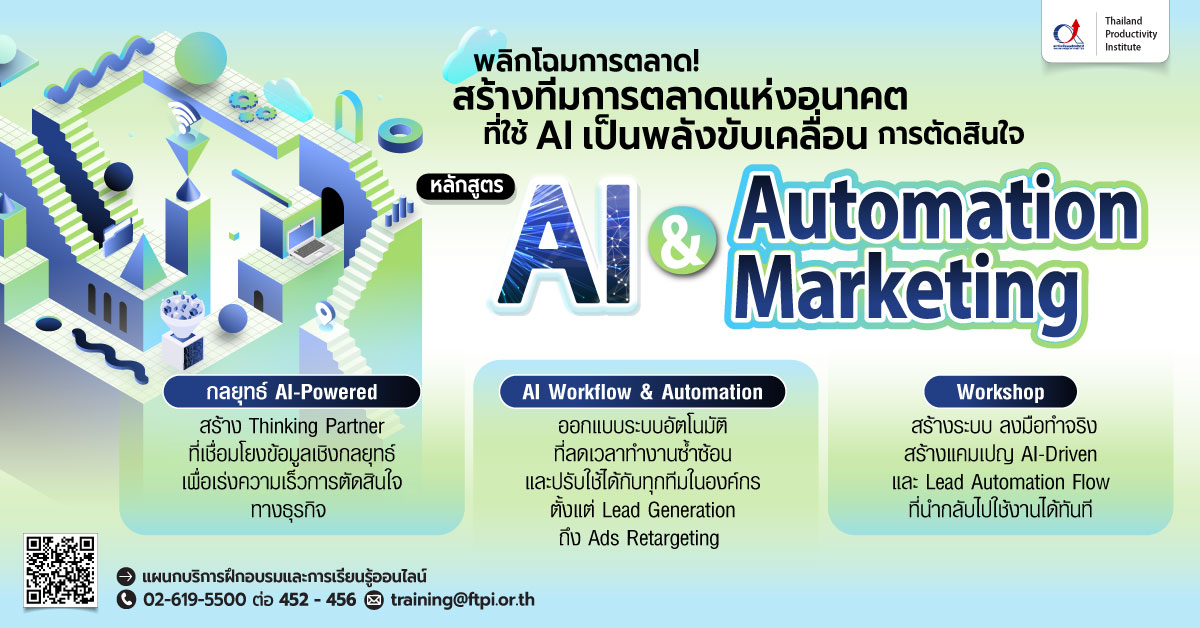 - เพื่อเสริมสร้างความรู้และความเข้าใจหลักการของ AI & Automation สำหรับการตลาดได้ พร้อมเชื่อมโยงกับกลยุทธ์การตลาดเชิงธุรกิจอย่างมีเหตุผล