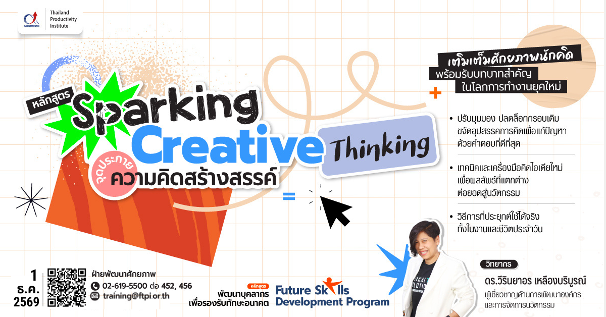 อย่าปล่อยให้ศักยภาพด้านความคิดสร้างสรรค์ของคุณถูกจำกัด สมัครเข้าร่วมหลักสูตรนี้เพื่อปลดล็อกพลังความคิดสร้างสรรค์ที่ซ่อนอยู่ และนำมันมาใช้สร้างคุณค่าให้กับตัวคุณและองค์กรของคุณ