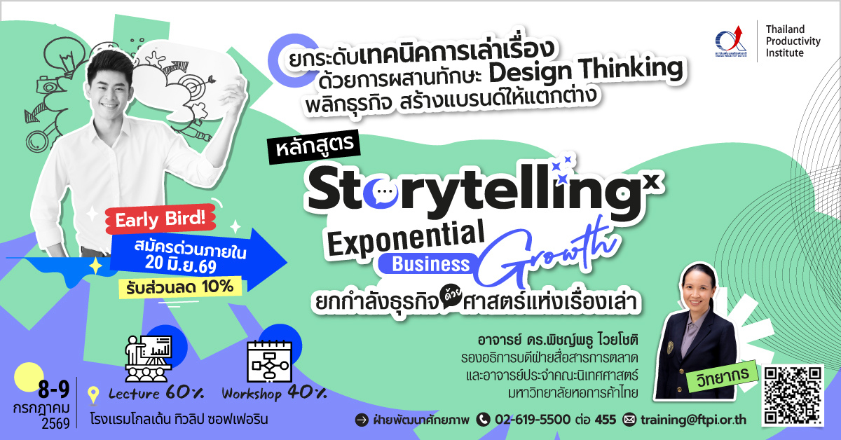 SD-PBS-01 : Storytelling: Exponential Business Growth (ยกกำลังธุรกิจด้วยศาสตร์แห่งเรื่องเล่า) Promotion! สมัครภายใน 20 มิ.ย.69 ลด 10%