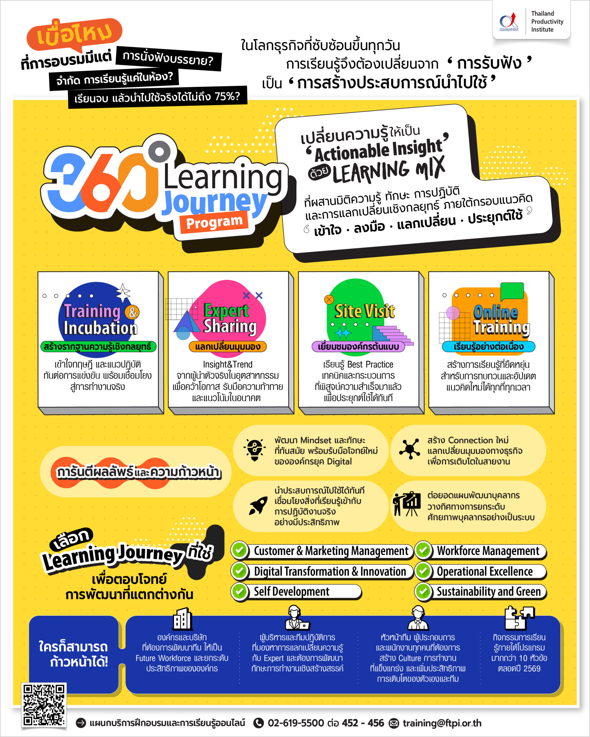 ฝ่ายพัฒนาศักยภาพ สถาบันเพิ่มผลผลิตแห่งชาติ  โทร 0-2619-5500 ต่อ 452-456